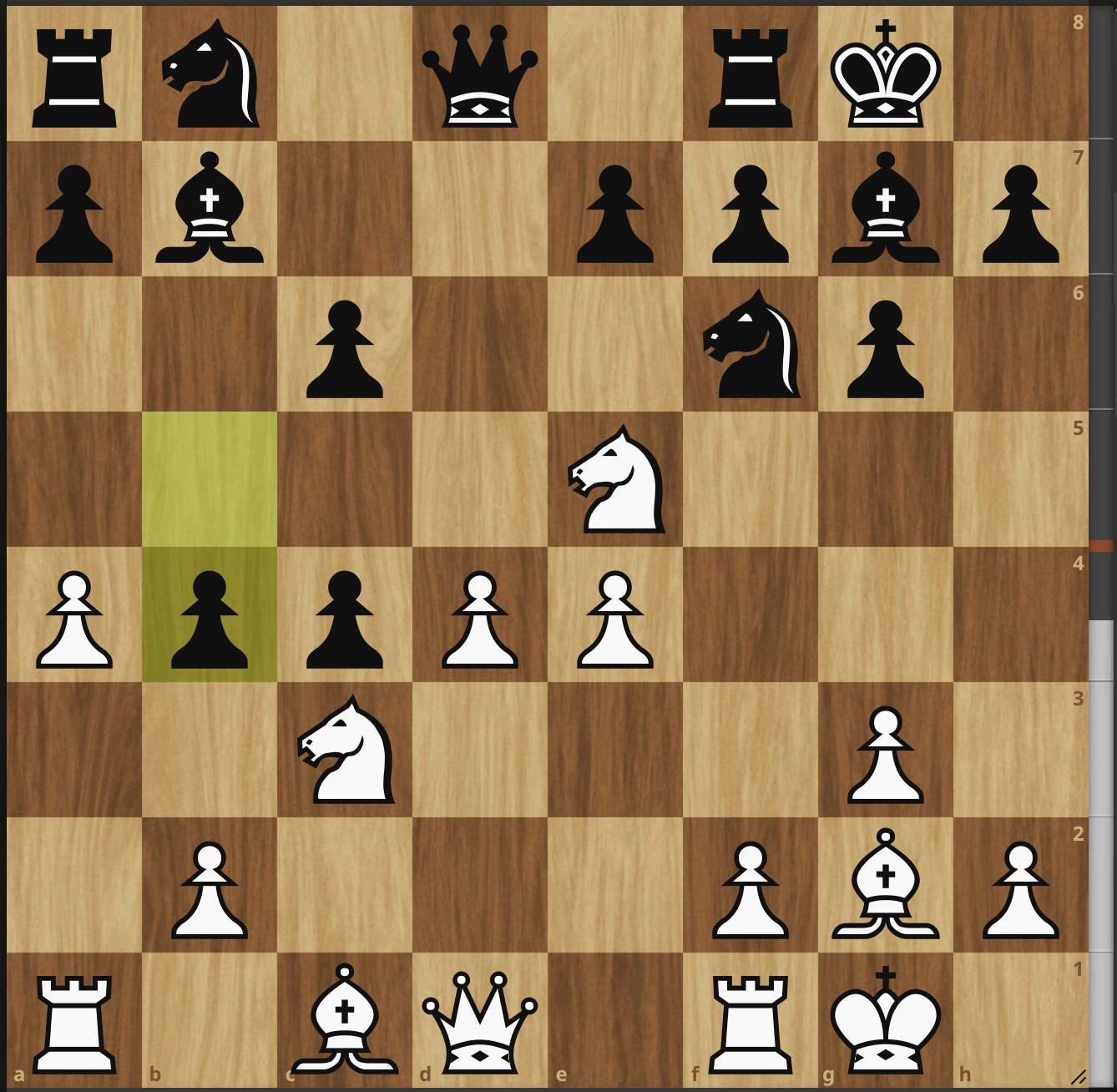 Game 2 was just a few days later, and it was round 9 in the Lonewolf league. I generally have ratings turned off in Lichess so I didn’t know their rating ahead of time. But looking over their games I noticed they play well. Really well. They had good opening knowledge and, even more foreboding, after the opening they used their pieces really well in the middle and endgames. So I went deep into opening line prep against them. I expected a Catalan and had prepped 14 moves deep against their Catalan. They had lots of games to review and played the same moves each time. I found a flaw in their line and was ready for this position: