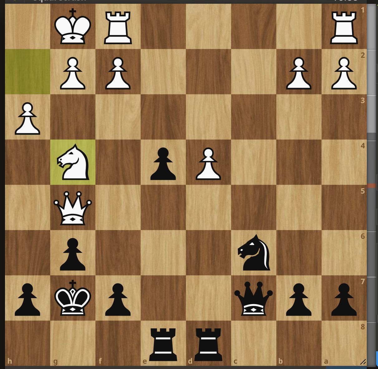 These are the blind spot errors we completely miss. They’re the most valuable to study because they expose the gaps in our board vision. The engine’s Evaluation Bar highlights them, but we turn off the engine lines so we’re forced to find the missed idea ourselves. For example, here’s a moment I missed.