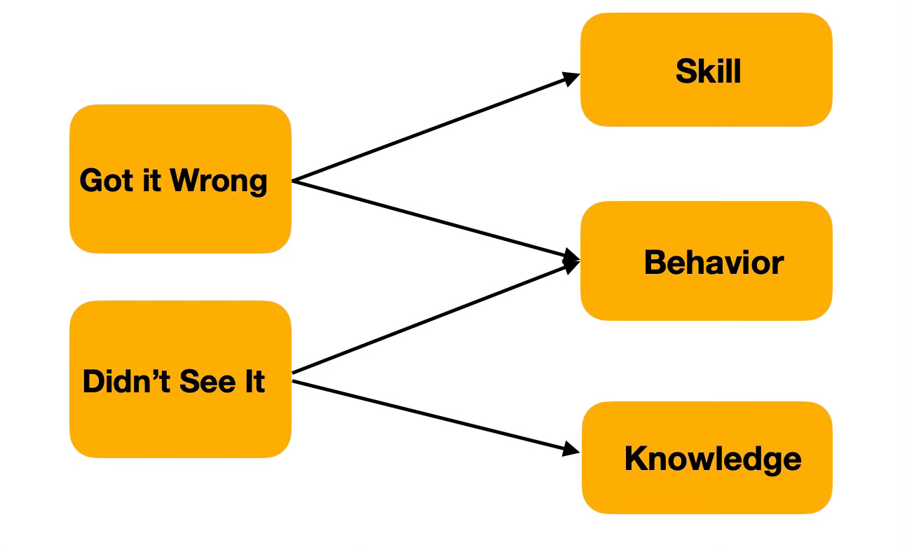 Didn’t See It → Usually a Knowledge gap (unfamiliar pattern) or a Behavior issue (not scanning thoroughly).